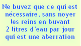 L'eau du robinet, essentiellement à cause du chlore, ne devrait jamais être consommée. Quant aux eaux minérales en bouteilles, elles sont souvent trop minéralisées et encrassent les reins.